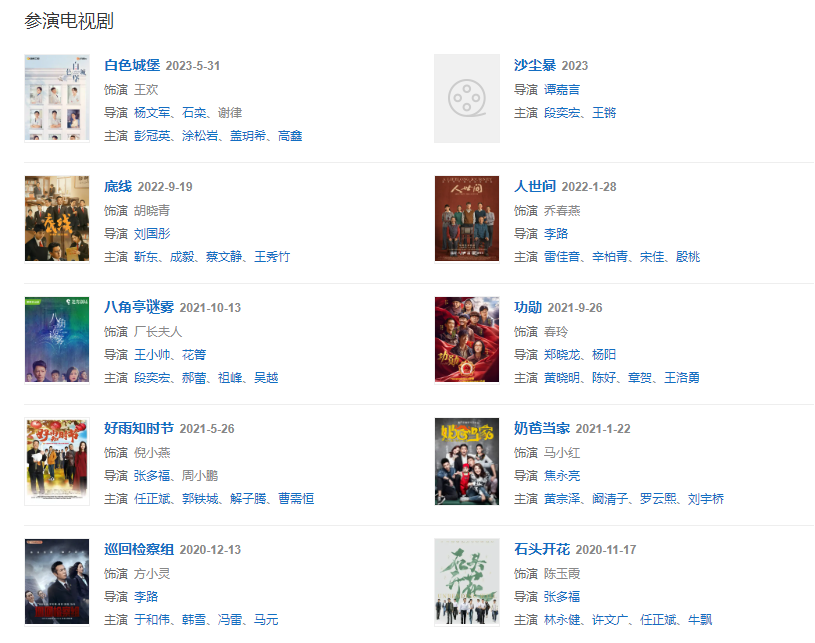 代表作品:天下第二、青島往事、闖關(guān)東、人潮洶涌、三十而嫁、愛情寶典、射雕英雄傳