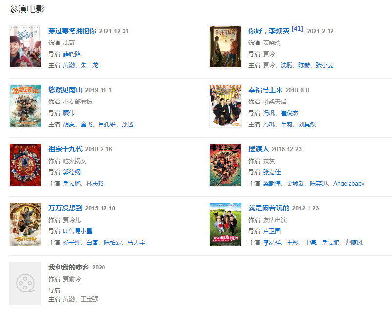 代表作品:喜樂(lè)街、大話捧逗、芝麻開(kāi)門(mén)、歡喜密探、你好,李煥英