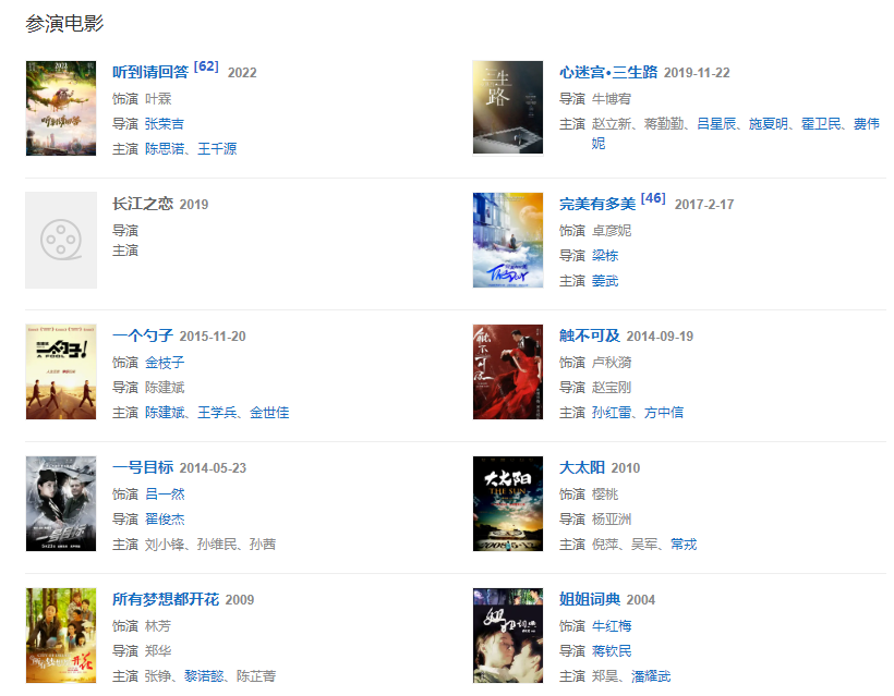 2009年,憑借勵(lì)志電影《所有夢想都開花》獲得了第13屆中國電影華表獎(jiǎng)優(yōu)秀女演員提名。