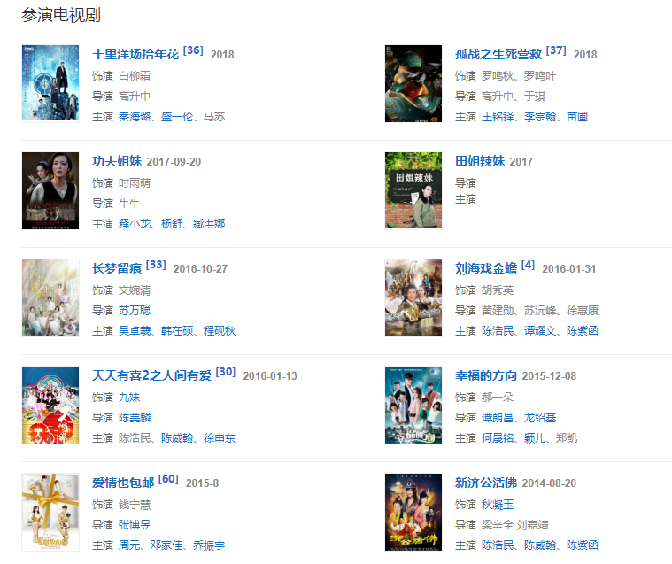 代表作品:七種武器之孔雀翎、楚留香傳奇、天天有喜、天天有喜2之人間有愛(ài)、劉海戲金蟾、活佛濟(jì)公:第二部、血色櫻花、步步驚心、薛平貴與王寶釧、深宮諜影