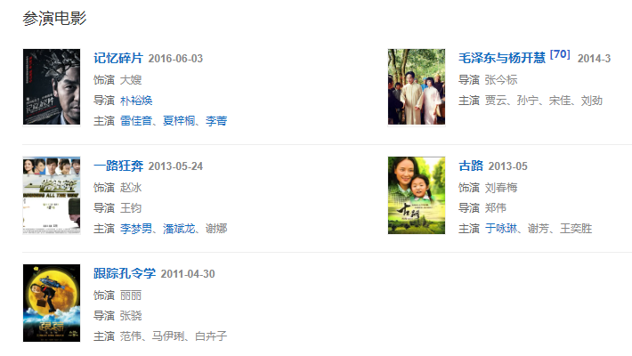 代表作品:金粉世家、京華煙云、老大的幸福、火線三兄弟、大連故事、風(fēng)雨、楚喬傳 、