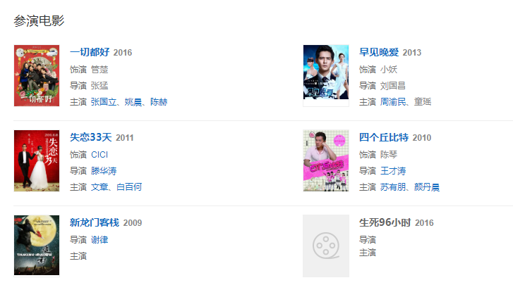 2011年,因在文章、白百何領(lǐng)銜主演的愛情電影《失戀33天》飾演CICI而受到關(guān)注。