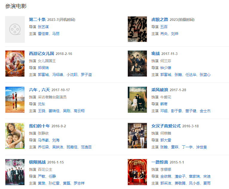 2016年,擔(dān)任河北省旅游形象大使。2017年,憑借電影《乘風(fēng)破浪》獲得第24屆北京大學(xué)生電影節(jié)最受大學(xué)生歡迎女演員獎(jiǎng);而其主演的古裝劇《楚喬傳》則成為了中國(guó)內(nèi)地首部在播期間網(wǎng)絡(luò)播放量突破400億次的電視劇。