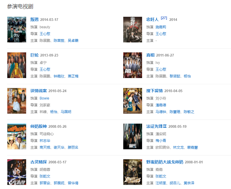 2006年,參演電視劇《歲月風(fēng)云》。2014317日其參演的電視劇《叛逃》在香港翡翠臺(tái)及高清翡翠臺(tái)首播。