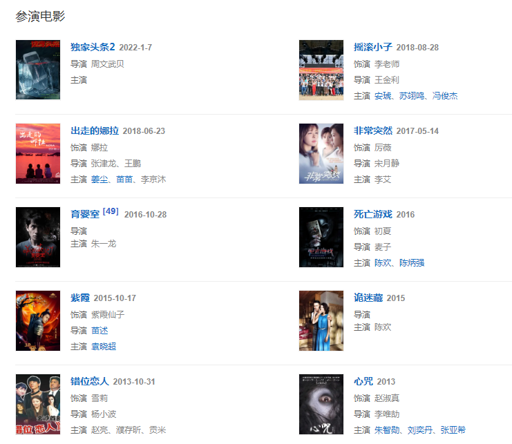 2016年參演電視劇《還是夫妻》和恐怖懸疑電影《死亡游戲》。