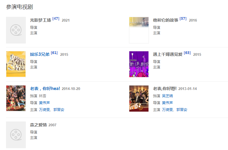 2014年參加《超齡打工假期》。參演紀錄片《燭光晚餐》。