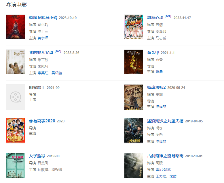 代表作品:《開心魔法》《王家欣》《戰(zhàn)地迷情》《賞金獵人》