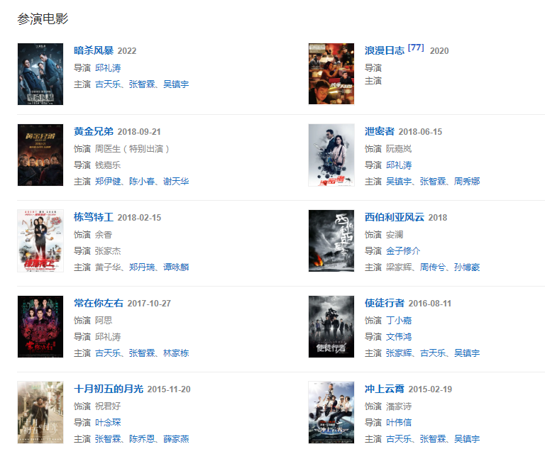 代表作品:宮心計、金枝欲孽、延禧攻略、公主嫁到、倚天屠龍記、使徒行者、天與地、鳳凰四重奏、帝女花、燕云臺