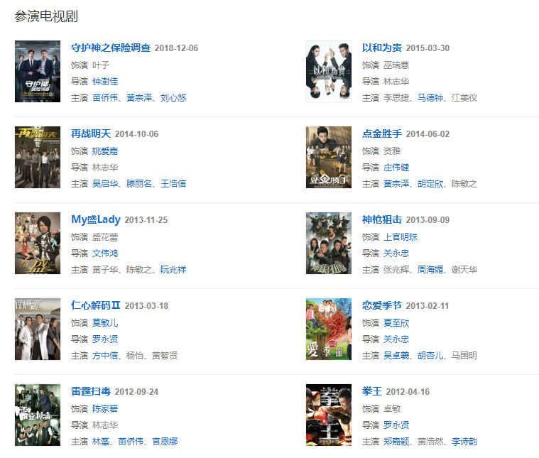 代表作品突圍行動(dòng)、跟蹤、潛行狙擊、雷霆掃毒、點(diǎn)金勝手、再戰(zhàn)明天、Hit Me
