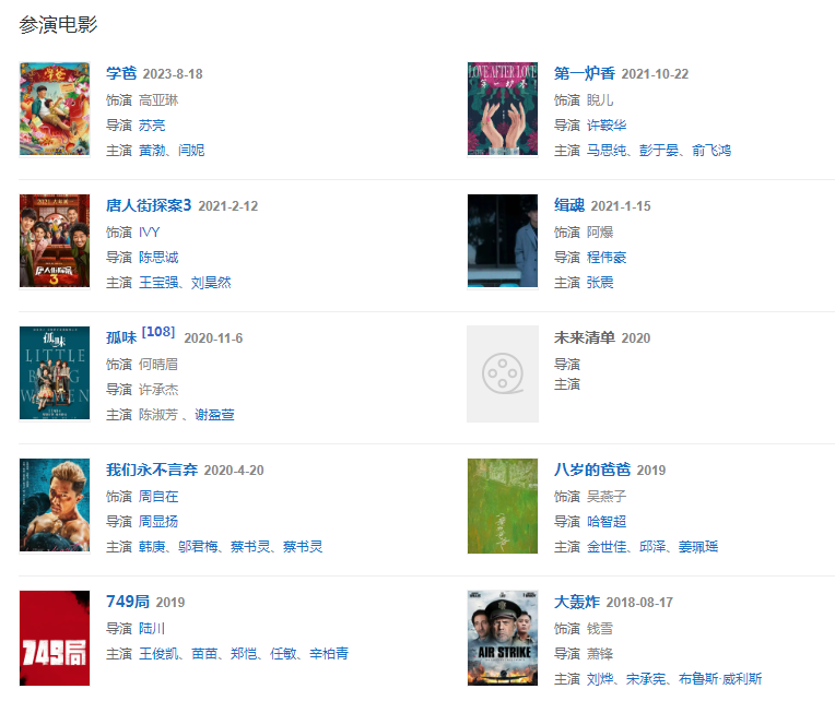 2021年,主演新時(shí)代緝毒大戲《不說(shuō)再見(jiàn)》開(kāi)播,同年10月參演的電影《第一爐香》上映。