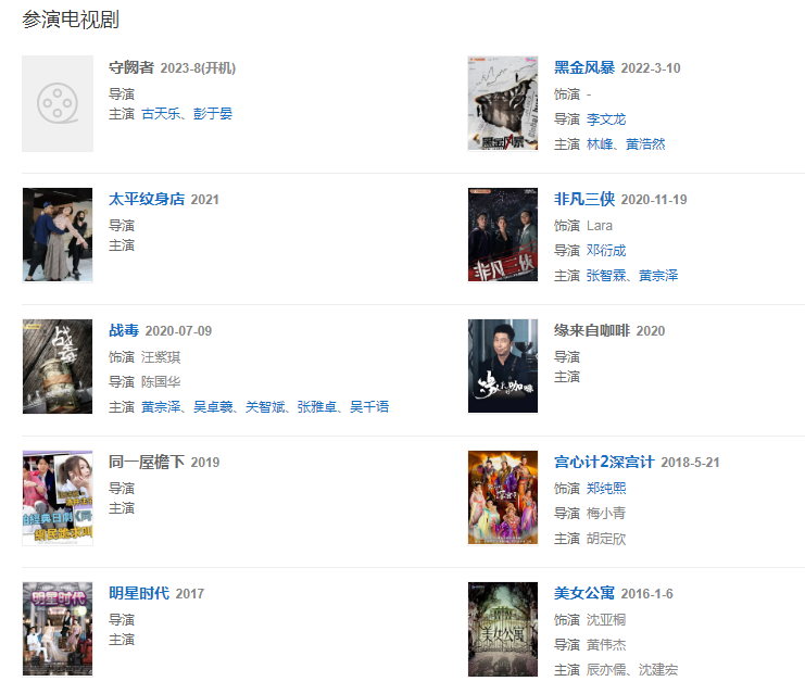 2022310日,與林峰、黃浩然合作主演的反腐懸疑網(wǎng)劇《黑金風(fēng)暴》播出 。