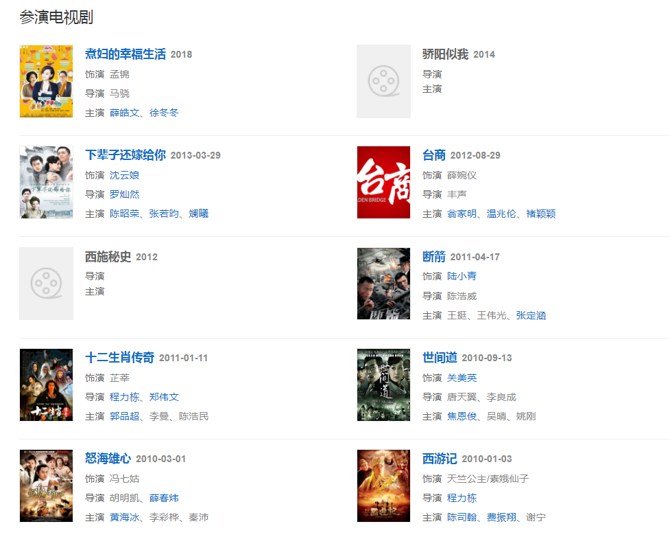 代表作品:梅花三弄之梅花烙、梅花三弄之水云間、一簾幽夢、絕代雙驕、新蜀山劍俠、世間道