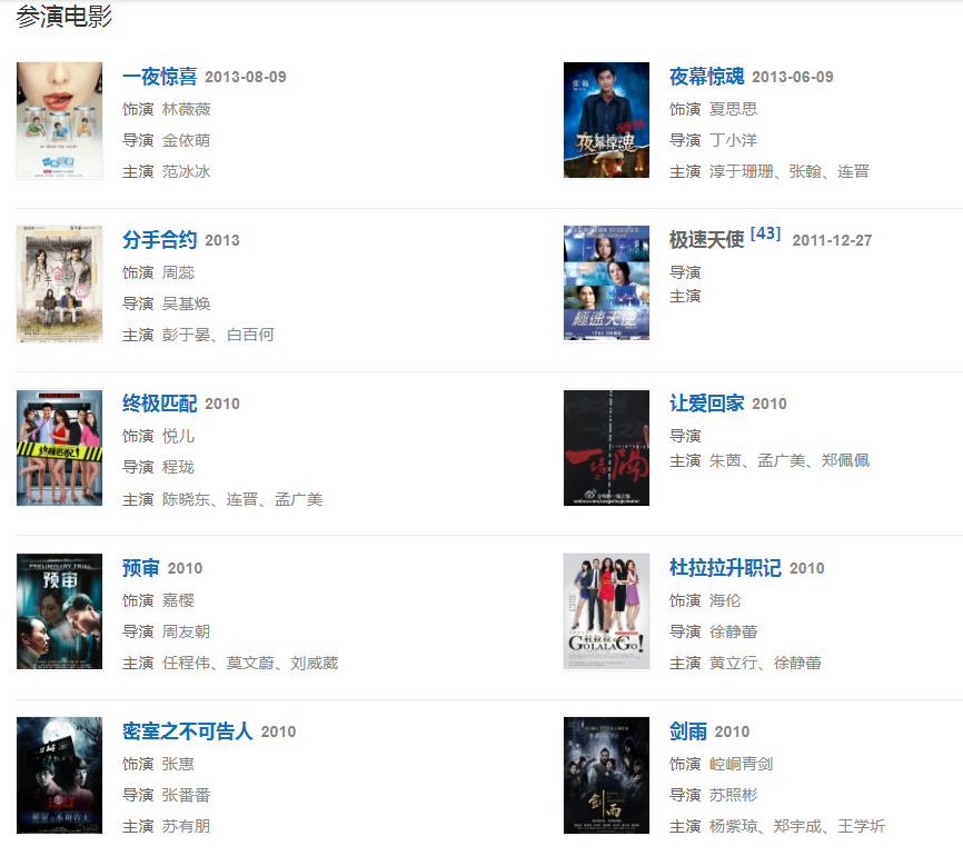 2010年,她出演的電影《預(yù)審》和《劍雨》上映。