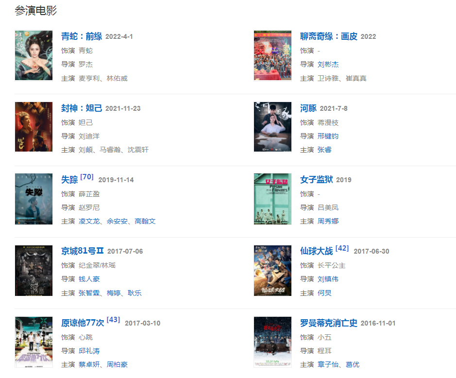 代表作品:女媧傳說之靈珠、雪山飛狐、古劍奇譚、前度、千機(jī)變、公主復(fù)仇記、大唐女巡按、浣花洗劍錄