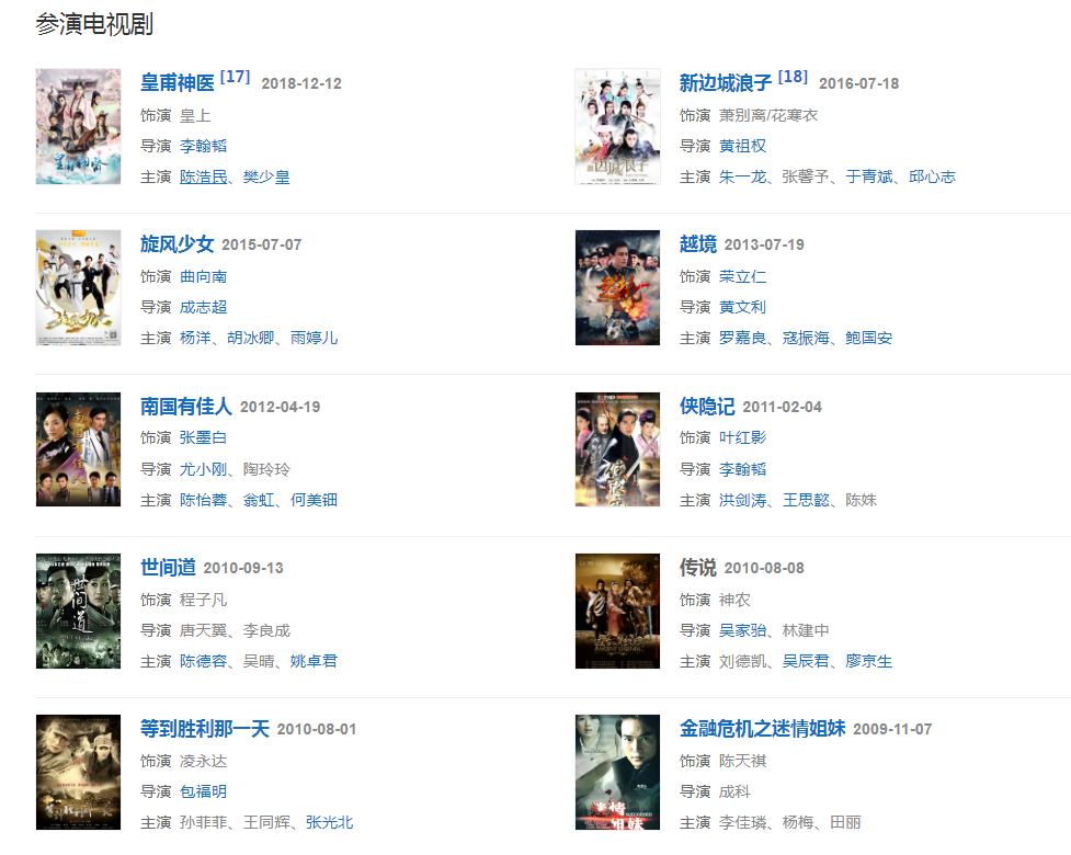2005年,飾演古裝神話劇《寶蓮燈》中亦正亦邪的二郎神楊戩創(chuàng)下央視八套黃金時段9.1的收視紀(jì)錄。